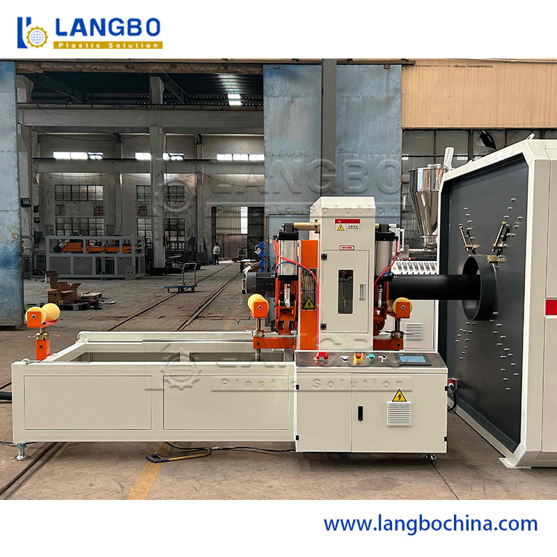 Экструдированная труба проходит через вакуумный калибровочный резервуар для стабилизации диаметра, затем входит в резервуар с охлаждающей водой для затвердевания.