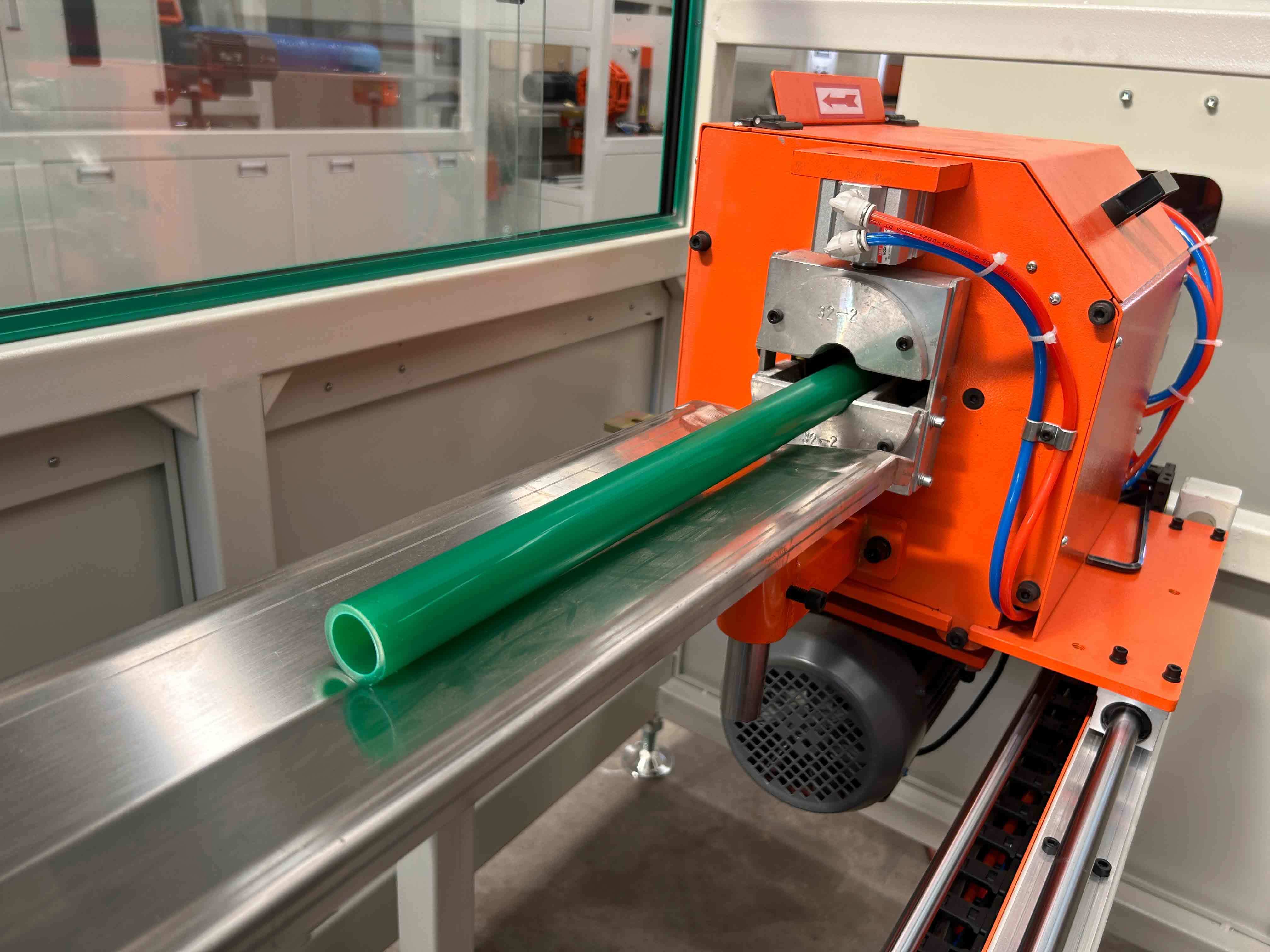 Продукт вытягивается с постоянной скоростью, а автоматический резач подрезает его до требуемых длин.