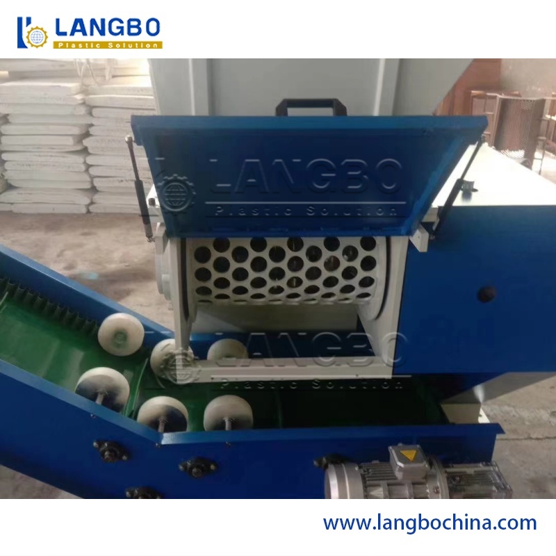 Перед тем, как линия экструзии труб из полиэтилена высокой плотности начнет бесперебойно экструдировать трубы, рабочим необходимо запустить машину и отрегулировать все детали в течение всего процесса. В этом процессе образуется много отходов в виде комков расплава полиэтилена. Это большие блоки, достаточно твердые. Поэтому с ними нельзя справиться с помощью дробилки, их можно обработать только шредером. Наш однороторный шредер имеет высокую скорость вращения и ножи особой формы. Рабочие помещают отходы комков расплава через отверстие, и частицы выпадают из выходного отверстия.