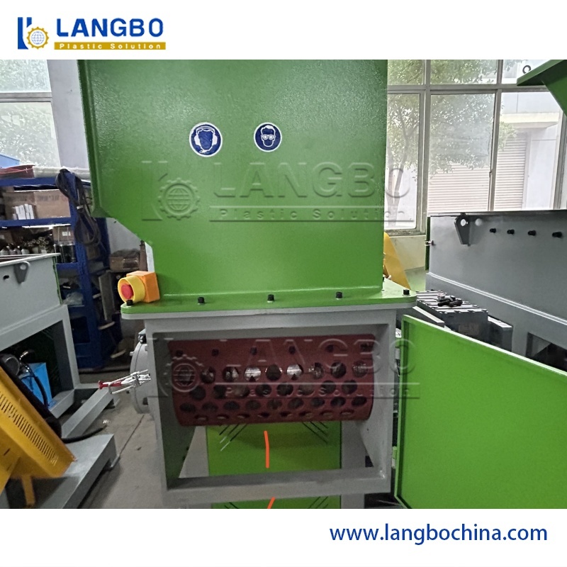 Перед эксплуатацией экструзионной линии для труб из ПЭВП, рабочие должны запустить машину и настроить все параметры в течение всего процесса. Во время этой процедуры образуются отходы в виде расплавленных комков ПЭ, представляющих собой большие твердые блоки, которые невозможно переработать стандартными дробилками. Наш одновальный шредер, оснащенный высокой скоростью вращения и специализированными ножами особой формы, эффективно перерабатывает эти материалы через входное отверстие, при этом частицы выгружаются из выходного отверстия.